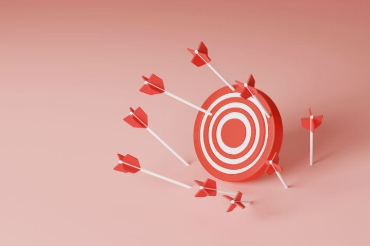 Target with darts hitting the bullseye, marketing strategy concept, NAMA branding.